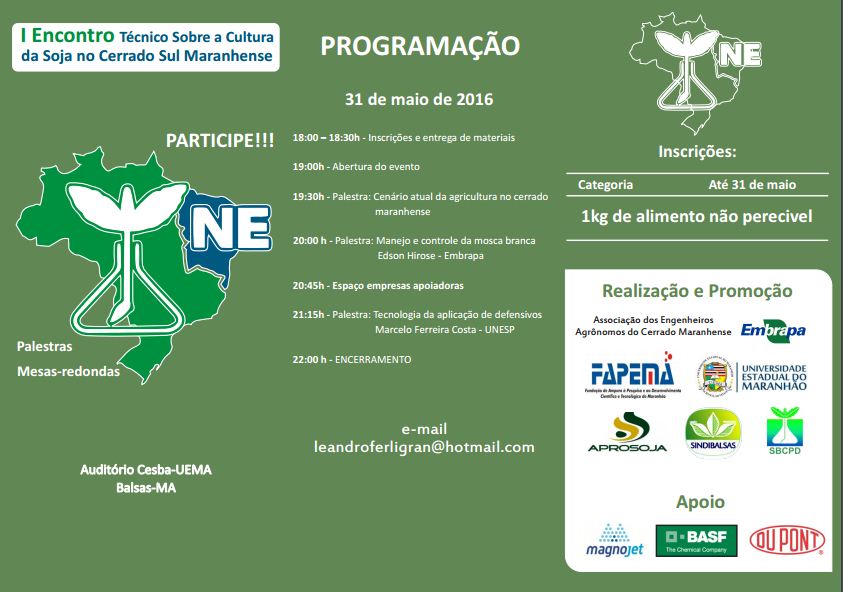 Será realizado no dia 31 de maio, no Campus Balsas UEMA, o I Encontro Técnico sobre a Cultura da Soja no Cerrado Sul Maranhense.