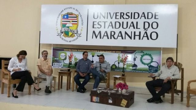 Durante a manhã a programação do evento contou ainda com a mesa redonda “Ações multidimensionais na construção do desenvolvimento sustentável na UEMA”. Participaram, Pró-Reitores de Planejamento, Antonio Roberto Serra, de Administração, Gilson Martins, de Graduação, Andréa de Araújo, de Extensão, Porfirio Candanedo Guerra Pesquisa, o Coordenador de Pesquisa, Claudio Eduardo Castro, representando o Pró-Reitor de Pós-Graduação, Marcelo Cheche e a prefeita de Campus, Fabiola Oliveira Aguiar, que falaram sobre os planos e as medidas adotadas pela administração da UEMA nas questões ambientais.