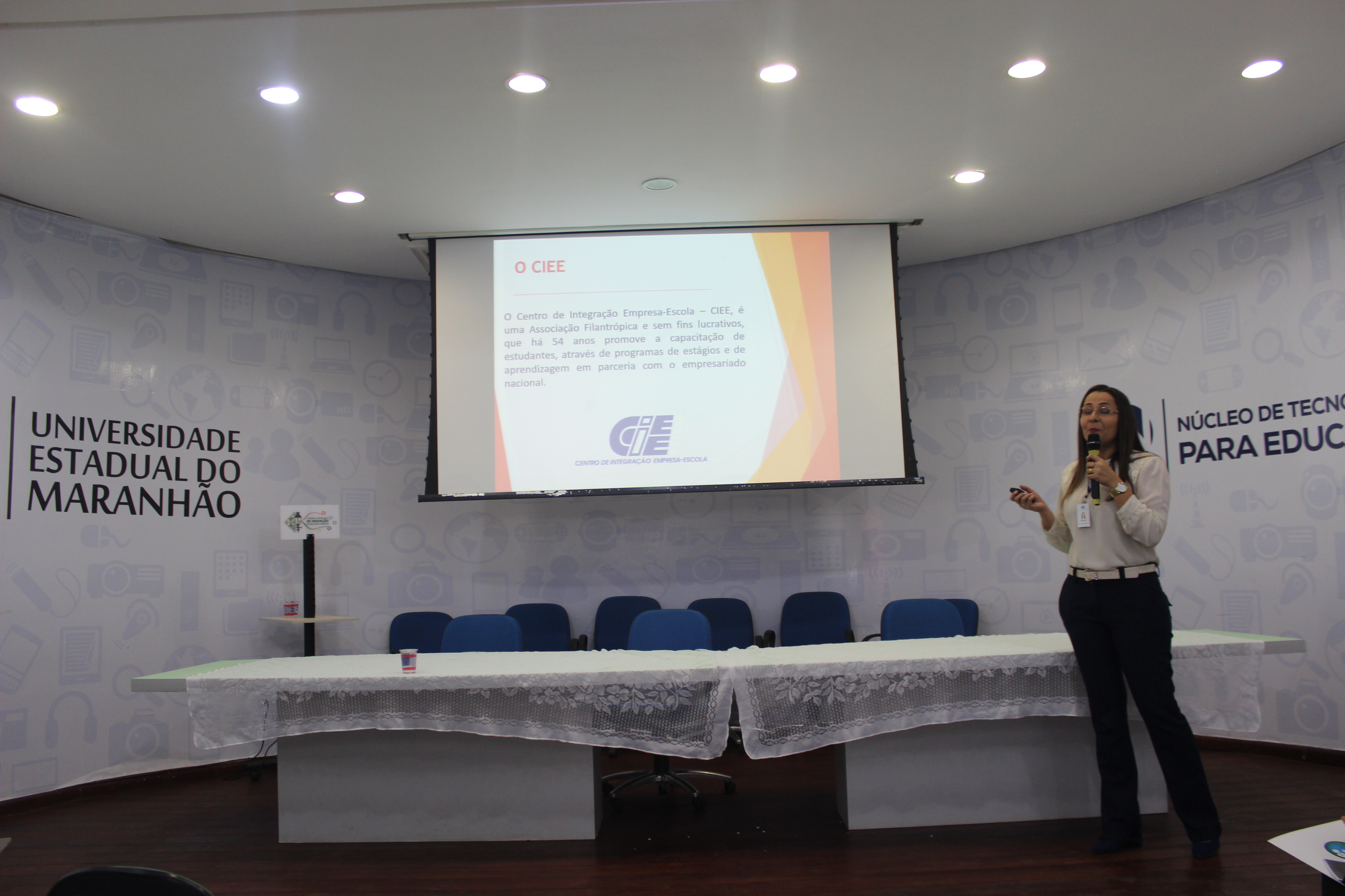 A representante do Centro de Integração Empresa Escola (CIEE), Raphaele Fernandes Campos Bacelos, ministrou a