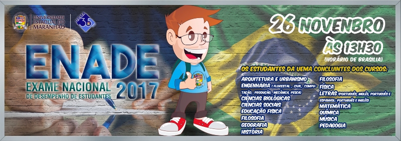 Foram convocados para o ENADE concluintes de cursos de bacharelado ou licenciatura da Universidade Estadual do Maranhão (UEMA), que tenham expectativa de conclusão até julho de 2018.