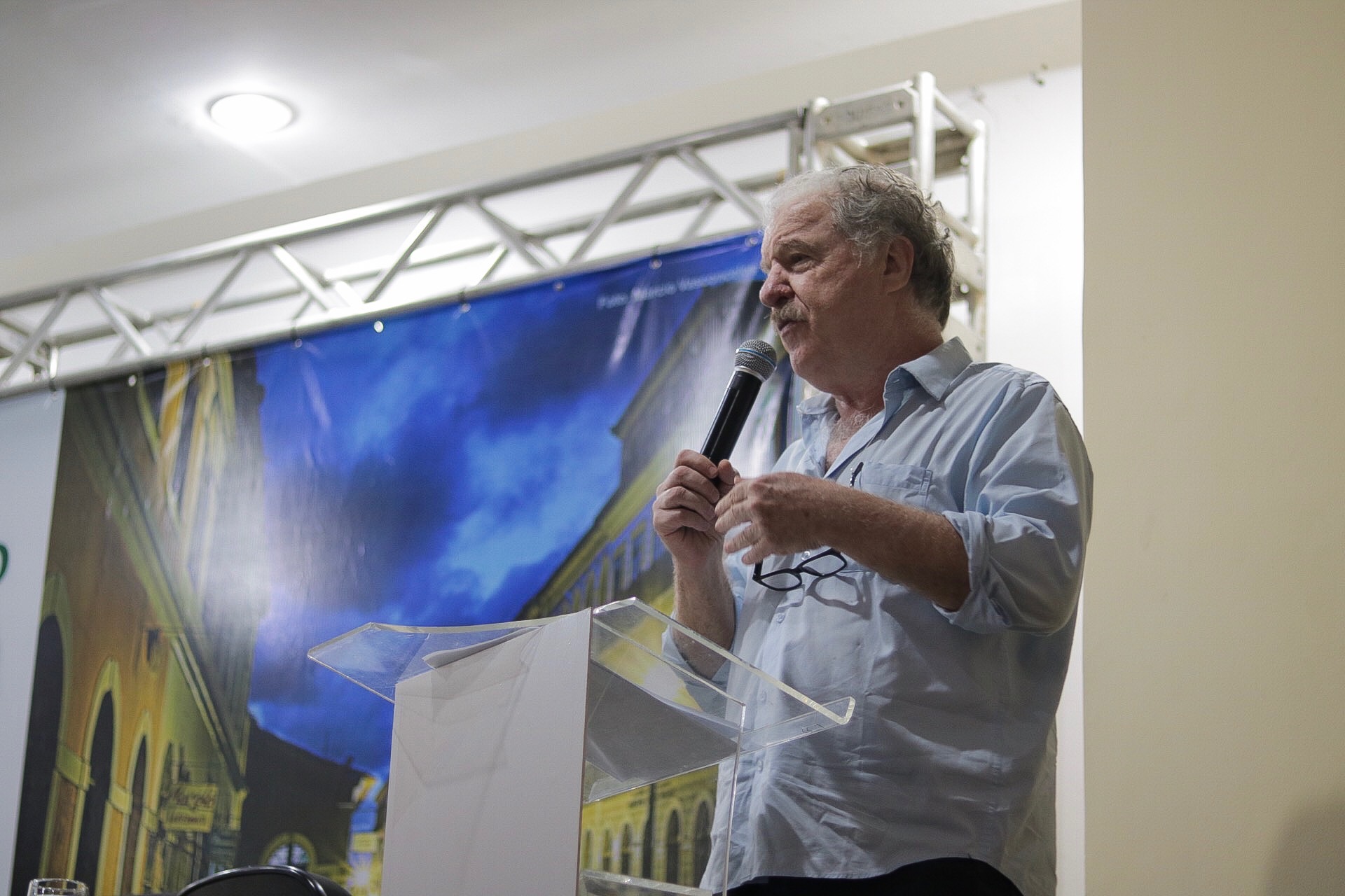 A primeira palestra foi coordenada por Carlos Vainer, professor titular do Instituto de Pesquisa e Planejamento Urbano e Regional (IPPUR / UFRJ) e realizou uma conversa com dados históricos, referências de outras cidades e indagações a respeito do Centro Histórico de São Luís. (Foto: Jonas Sakamoto / ASCOM UEMA)
