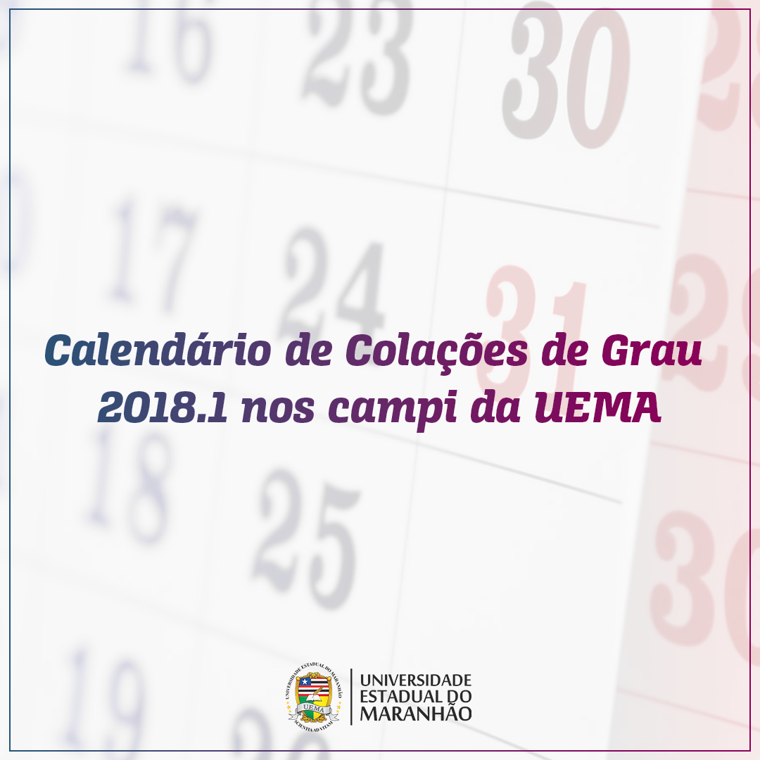 As datas das Colações de Grau 2018.1 dos campi da Universidade Estadual do Maranhão (UEMA) já estão definidas, de acordo com o Calendário Acadêmico.