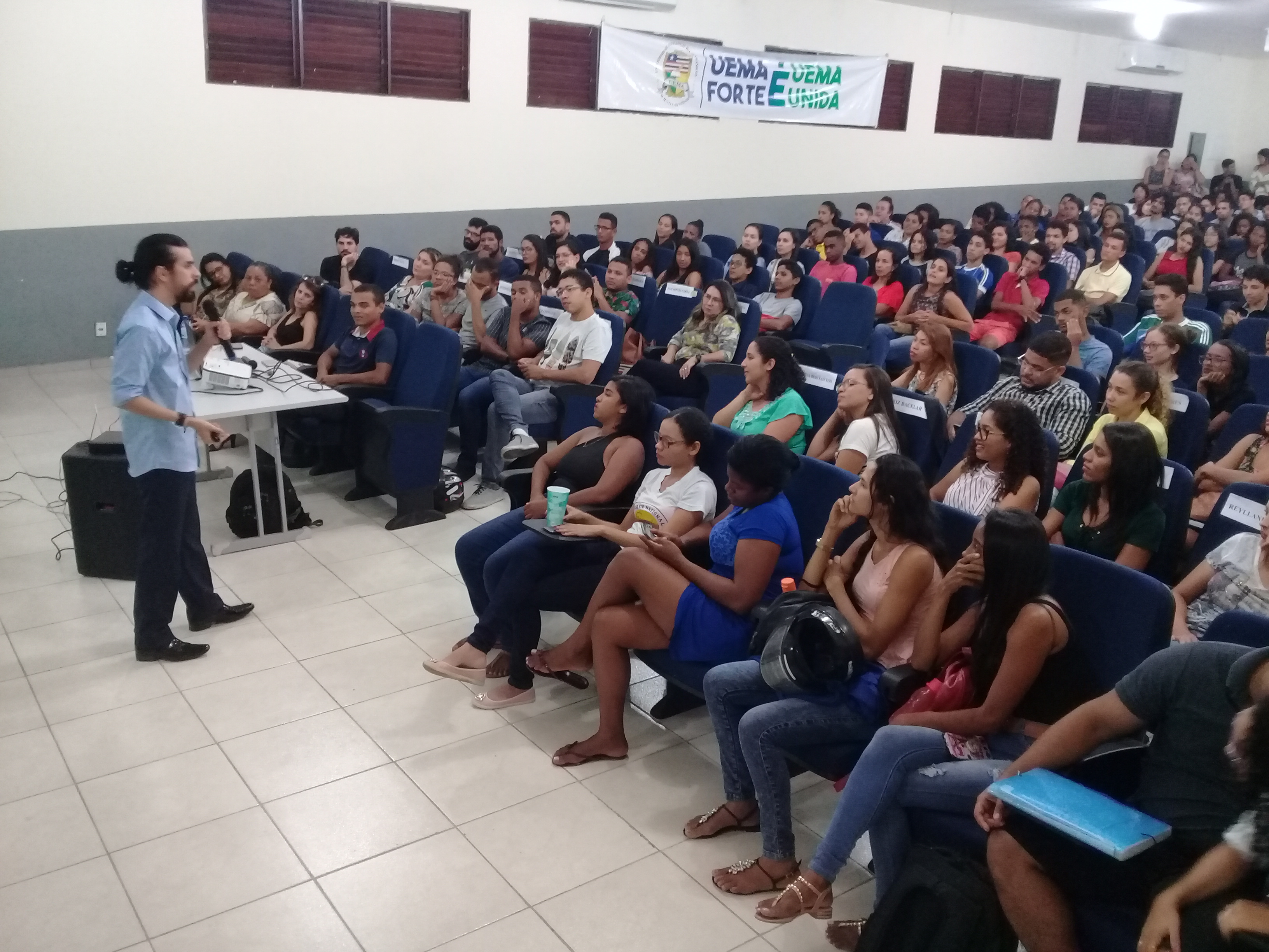 O Prof. Gonçalo Mendes da Conceição, do Curso de Biologia do Campus Caxias, saudou os presentes. “Vejo que praticamente todos os nossos alunos de Graduação do CESC UEMA estão aqui. O professor Bruno, graduado em Ciências Biológicas, Biomedicina, Teologia e especialista em Psicopedagogia, vai conversar com vocês sobre maneiras para enfrentar desafios nessa etapa de formação”, disse ele.