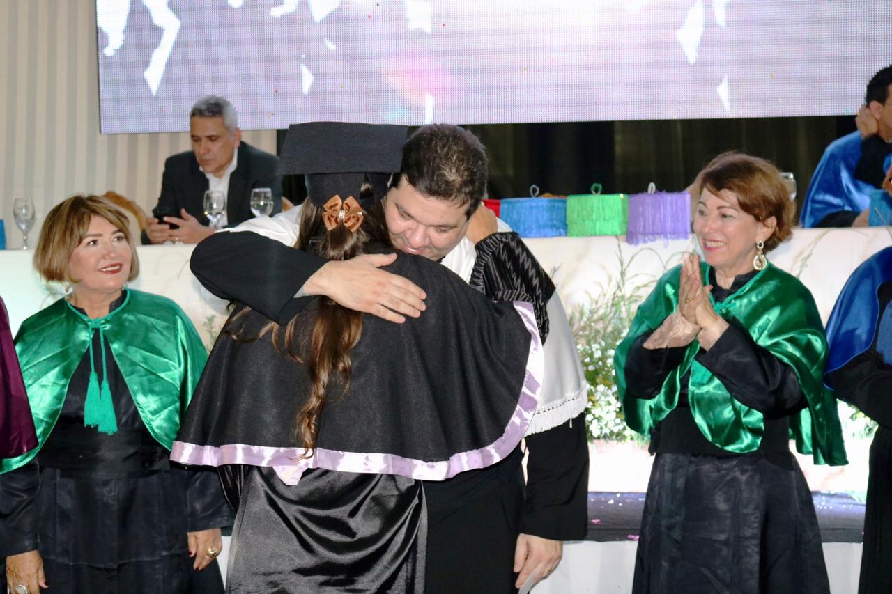 A oradora oficial da noite, a formanda Aline Nayara Lopes Silva, do curso de Pedagogia, afirmou: “Faz-se necessário, neste momento, olharmos para trás, para o princípio da nossa jornada acadêmica, quando tudo ainda era incerto. Hoje, diferentemente temos a noção de que uma pequena parte do nosso legado começou a ser construído. Foram anos árduos, contudo, perseveramos e prosseguimos em direção ao nosso prêmio: a tão sonhada conclusão do ensino superior. Estou certo de que nosso esforço de chegar até aqui não foi em vão. Façamos, portanto, a diferença”.