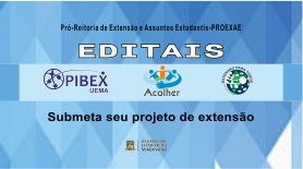 A Universidade Estadual do Maranhão, por meio da Pró-Reitoria de Extensão e Assuntos Estudantis, informa que estão abertas as inscrições para a seleção de projetos dos Programa Institucional de Bolsa de Extensão (PIBEX/UEMA), Programa Institucional para o Desenvolvimento na Primeira Infância (ACOLHER) e Programa Extensão para Todos.