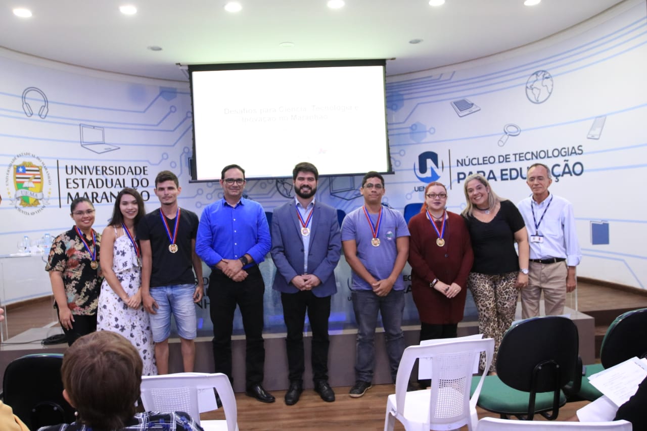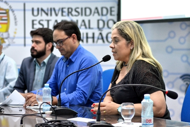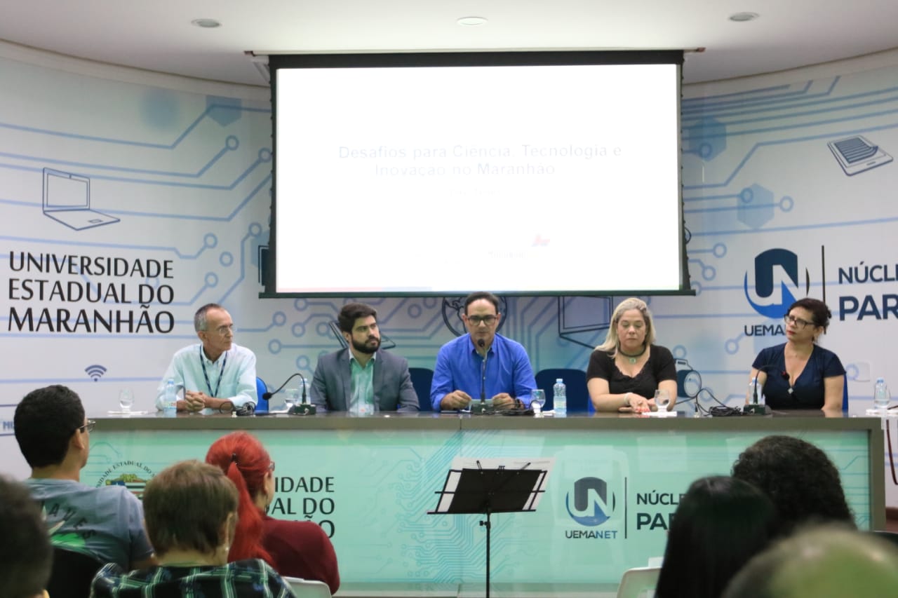 eram a mesa de abertura o pró-reitor de Planejamento e Administração, Antônio Roberto Serra, representando o reitor da UEMA, Gustavo Pereira da Costa; a coordenadora Geral do UEMAnet, Ilka Serra; o secretário de Ciência, Tecnologias e Inovação do Maranhão, Davi Telles; o pró-reitor de Gestão de Pessoas, Rômulo Travassos e a pró-reitora Adjunta de Graduação, Fabíola Santana.