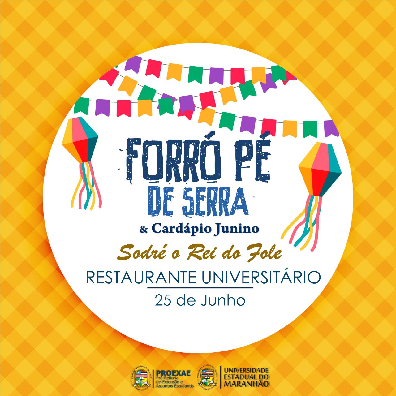 O Restaurante Universitário da UEMA, realizará nesta terça feira (25), mais uma atividade em comemoração ao período junino na Universidade. Será oferecido aos usuários um cardápio especial para comemorar a data, com muita alegria e brincadeira ao som do grupo Sodré Puxa o Fole (Forró Arrasta Pé). Segundo o gerente do R.U, Joaquim Vilanova, “Esse momento será de muita integração e interação entre os alunos, professores, servidores e colaboradores que fazem a Universidade”.