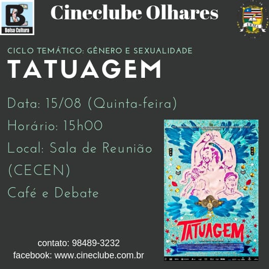 IMG-20190812-WA0007O projeto Cineclube Olhares, do Curso de Filosofia da Universidade Estadual do Maranhão, exibirá nesta quinta-feira o filme Tatuagem.