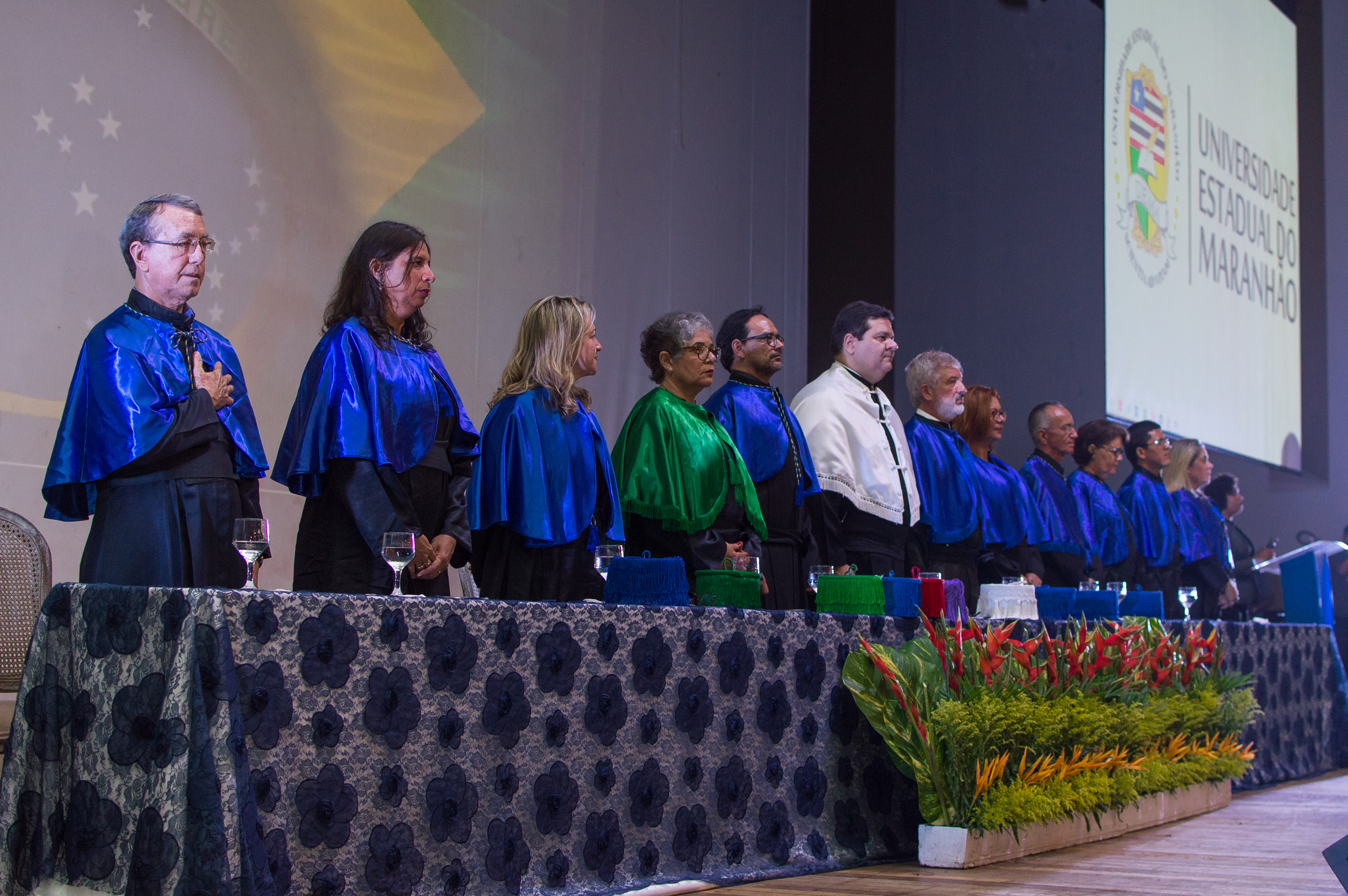 A mesa diretora da cerimônia foi composta pelo reitor da UEMA, Gustavo Pereira da Costa; pelo vice-reitor, Walter Canales Sant’Ana; pelos pró-reitores, Antônio Roberto Coelho Serra (Pró-Reitor de Planejamento e Administração), Zafira da Silva de Almeida (Pró-Reitora de Graduação), Rita Maria de Seabra Nogueira (Pró-Reitora de Pesquisa e Pós-Graduação), José Rômulo Travassos da Silva (Pró-Reitor de Gestão de Pessoas), Fabiola de Oliveira (Pró-Reitora de Infraestrutura). Pelos diretores de Centro, Maria Goretti Cavalcante de Carvalho (CECEN), Nicodemos Araújo Costa (CCSA), Ana Maria Silva (CCA), Fernando Lima (CCT) e pela coordenadora Geral do UEMANET, Ilka Serra.
