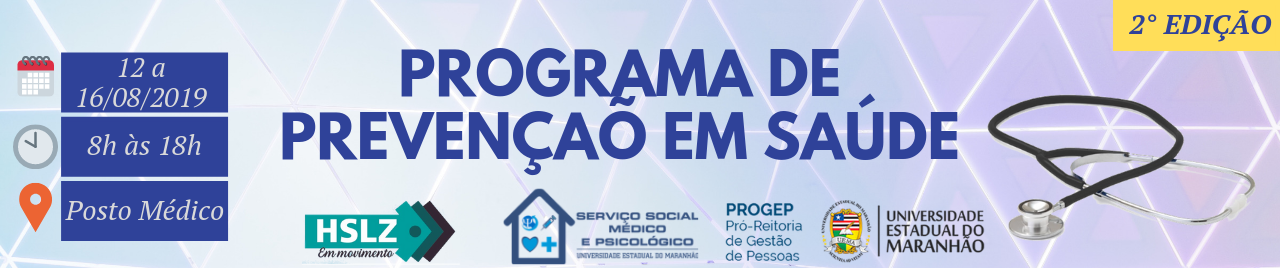 O Serviço Social e Médico da Universidade Estadual do Maranhão, em parceria com o Hospital São Luís, conhecido como Hospital do Servidor, realizará a 2° edição de atendimentos, entre os dias 12 a 16 de agosto, das 8h às 18h, no Posto Médico da Universidade. A ação contará com as seguintes especialidades médicas: Clinico Geral, Oftalmologia, Cardiologista, Exames Laboratoriais e Nutricionista. O atendimento será feito mediante a apresentação do Registro Geral – (RG) e contracheque do servidor.