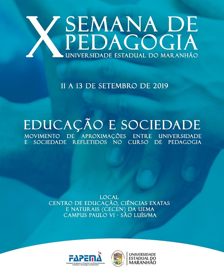 A Universidade, especialmente os cursos de formação de professores, precisam fazer a leitura dos novos desafios da sociedade do Século XXI e todas as suas problemáticas socioculturais, econômicos e políticos. Diante disso, a Universidade Estadual do Maranhão (UEMA), por meio da direção do curso de Pedagogia Licenciatura do Centro de Educação, Ciências Exatas e Naturais (CECEN) realizará, entre os dias 11 e 13 de setembro de 2019, no prédio dos cursos de Pedagogia, Filosofia e Geografia – Campus Paulo VI, na cidade de São Luís, a X Semana de Pedagogia.