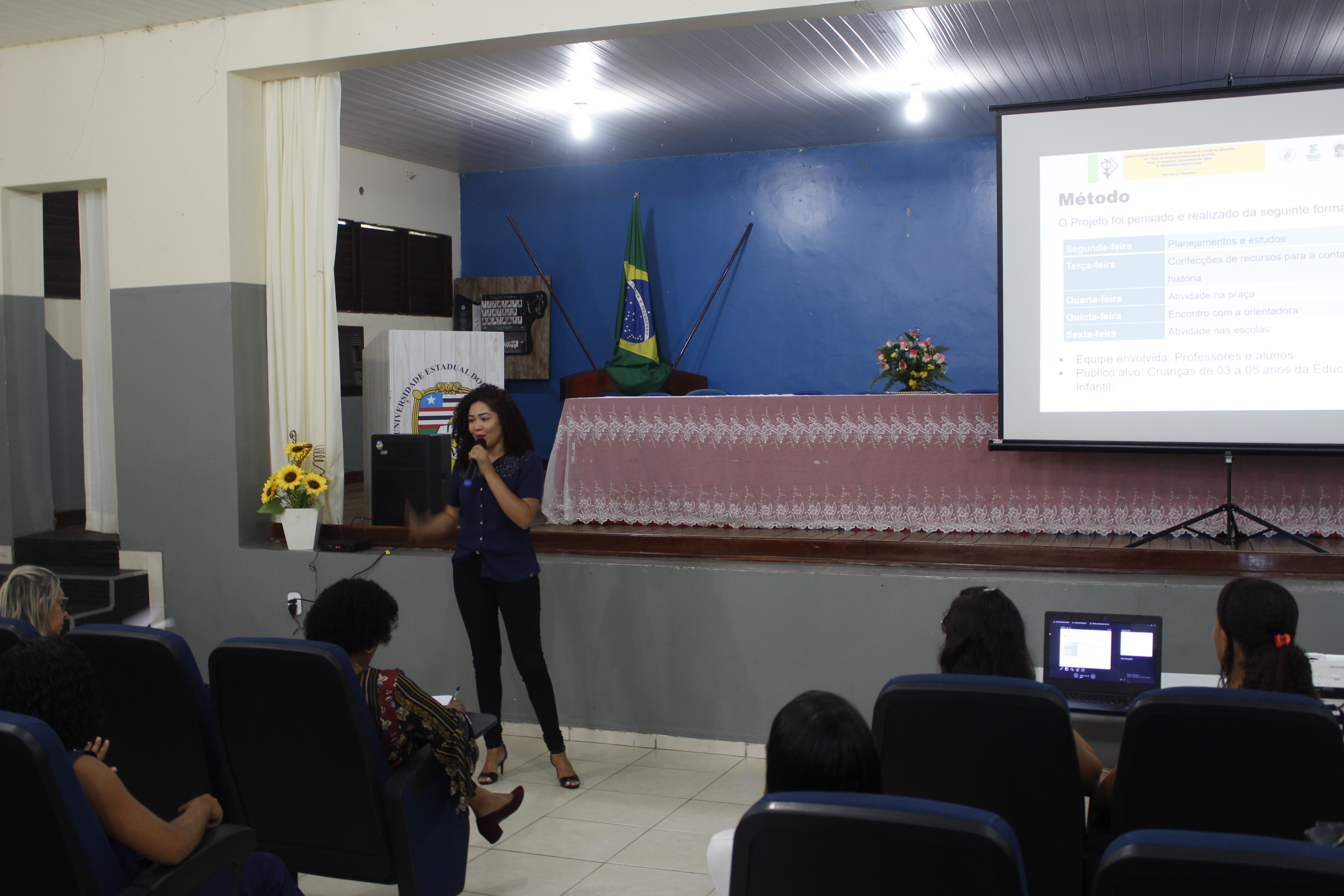 Um dos trabalhos apresentados foi o de Francisca Kelli Nascimento Silva, intitulado “A Contação de História na Educação Infantil”, um trabalho mostrado no PRÉ – JOEX no mês de abril deste ano. “O projeto foi desenvolvido na Escola Nossa Senhora de Assunção, Colégio Professora Isabel Dolores Leão Brito e na Praça Duque de Caxias, em frente à UEMA. A contação de história tem o objetivo de levar para as crianças um momento de aprendizagem, fazendo parte do componente lúdico. A ludicidade é o meio que possibilita que elas se desenvolvam no plano social, emocional e cultural”, disse Francisca.
