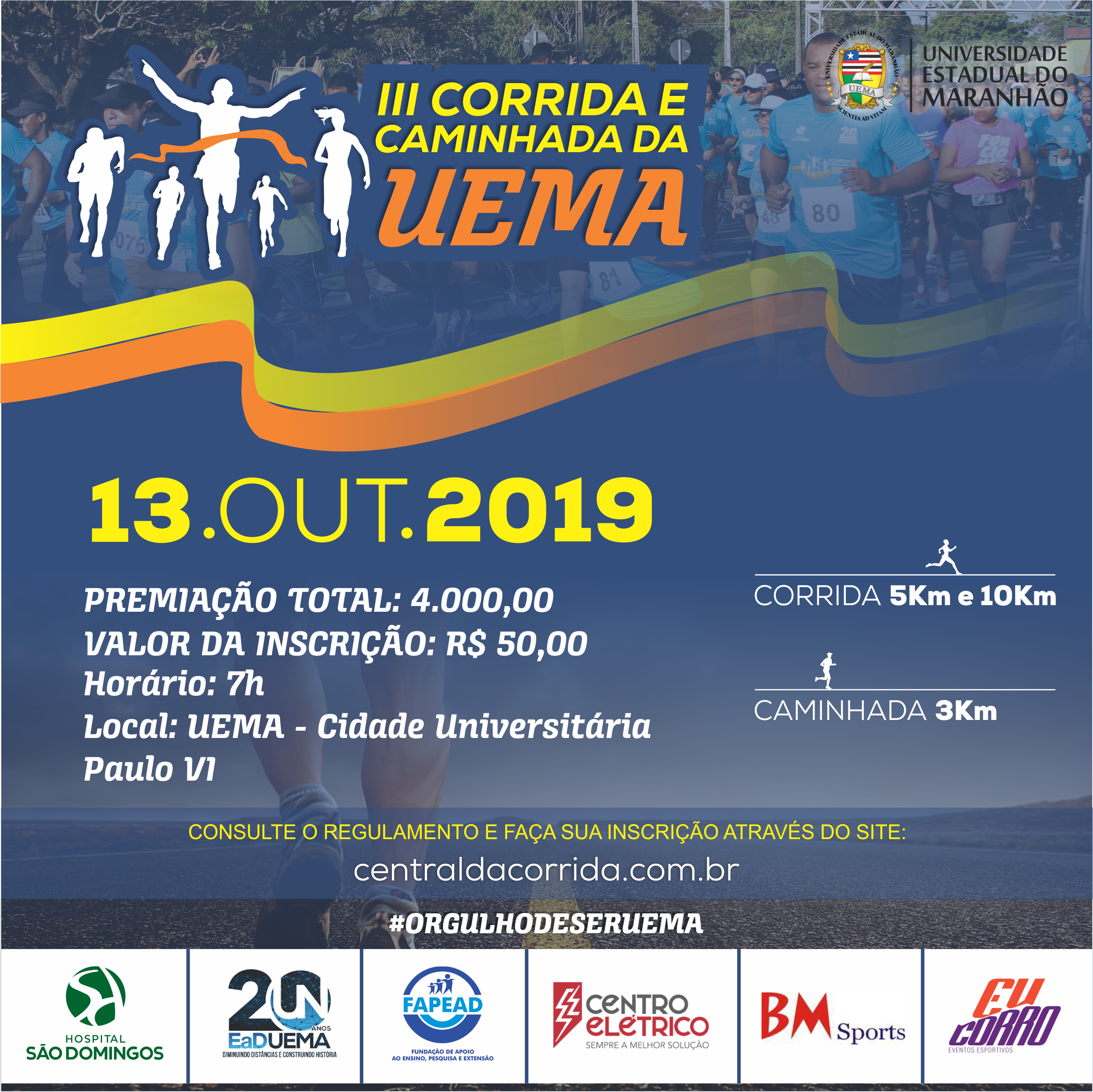 A Universidade Estadual do Maranhão (UEMA), em parceria com a Eu Corro – Eventos Esportivos, irá promover a III Corrida e Caminhada da UEMA, que ocorrerá, 13 de outubro, no Campus Paulo VI.