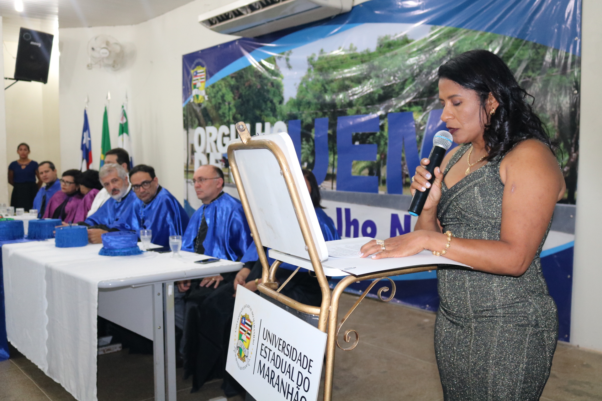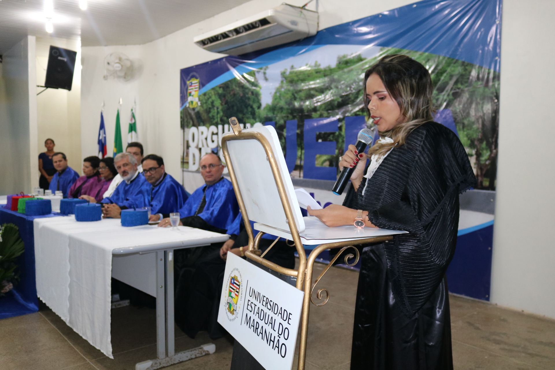 A paraninfa, Profa.Angela Maria Oliveira Saraiva, do curso de Ciências Biológicas, realçou que a formatura dos jovens significa transformação da comunidade local: “Obrigada a nossa Universidade por possibilitar que nossos jovens tenham igual oportunidade e melhor qualificação profissional, transformando as vidas da nossa comunidade. E digo que vocês formandos a partir de hoje fazem parte de um seleto percentual de cidadãs e cidadãos brasileiros que concluem um curso superior. Com isso aumenta suas responsabilidades e seu papel perante a sociedade, que espera mais de vocês. Hoje cada um inicia um novo ciclo em sua vida aqui na graduação. Mas, não é o fim e sim o começo de uma nova empreitada rumo ao desenvolvimento profissional, social e pessoal”.
