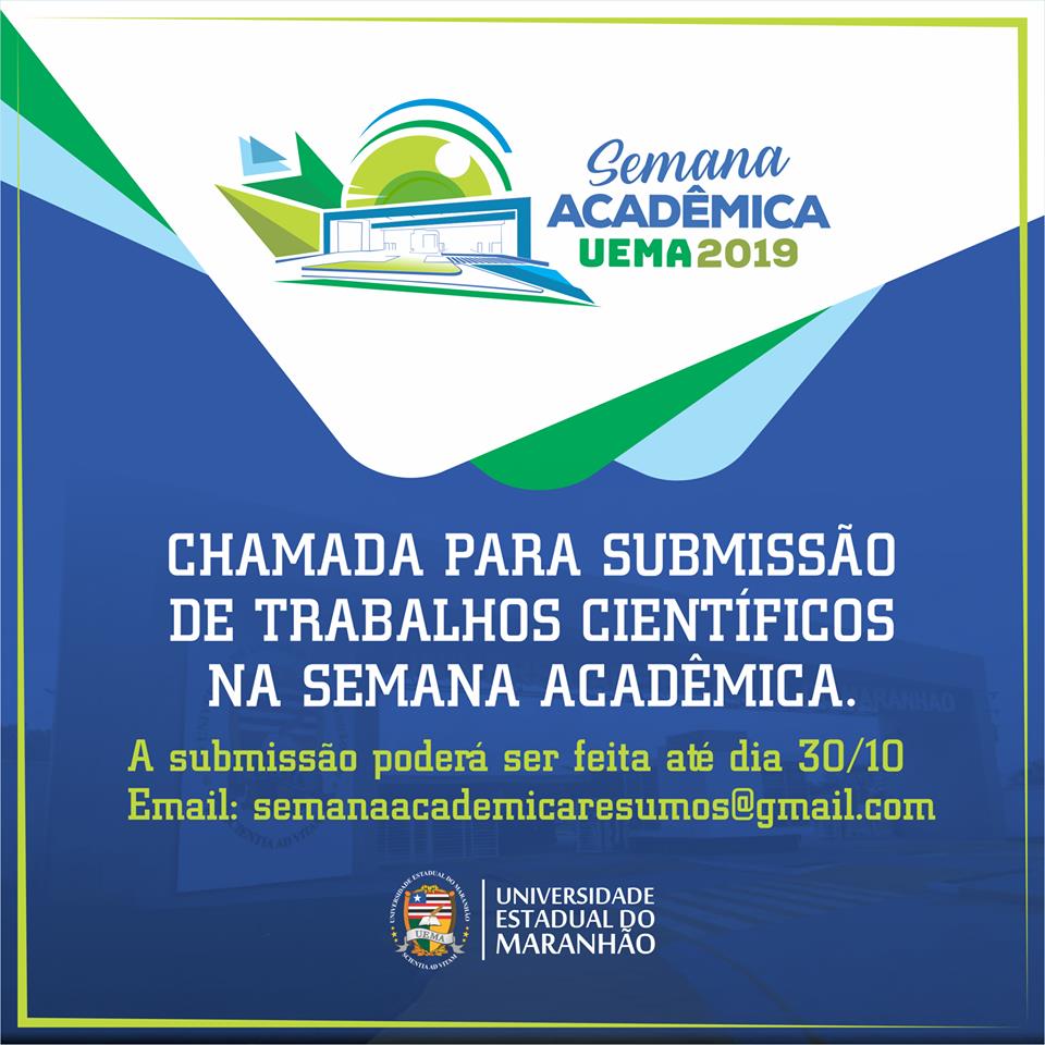 A Coordenação Geral da Semana Acadêmica 2019 estará recebendo trabalhos científicos, no formato modelo resumo simples, conforme normas disponíveis em http://semanaacademica.uema.