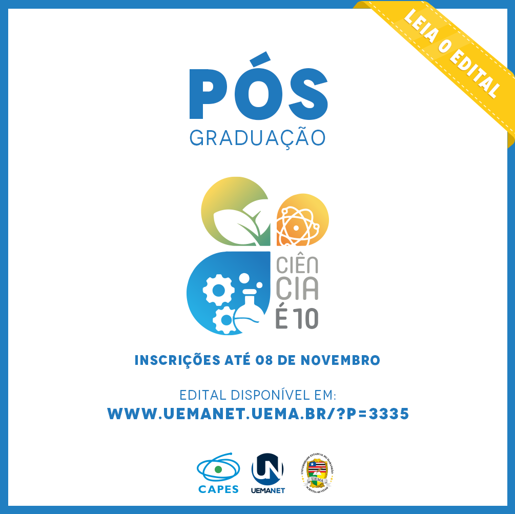 A Universidade Estadual do Maranhão (UEMA), por meio do Núcleo de Tecnologias para Educação (UEMAnet), está com as inscrições abertas para o programa Ciência é 10. A pós-graduação lato sensu é voltada para professores da rede pública que atuam no ensino de ciências do 6º ao 9º ano do Fundamental. A UEMA oferece 450 vagas distribuídas nos 13 polos da Universidade Aberta do Brasil, contemplados no edital.