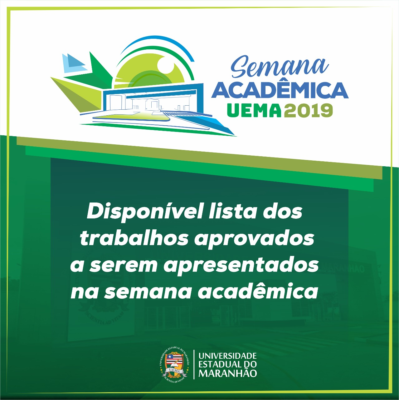 A Coordenação da Semana Acadêmica 2019 disponibiliza a lista parcial dos trabalhos aceitos para apresentação durante o evento.
