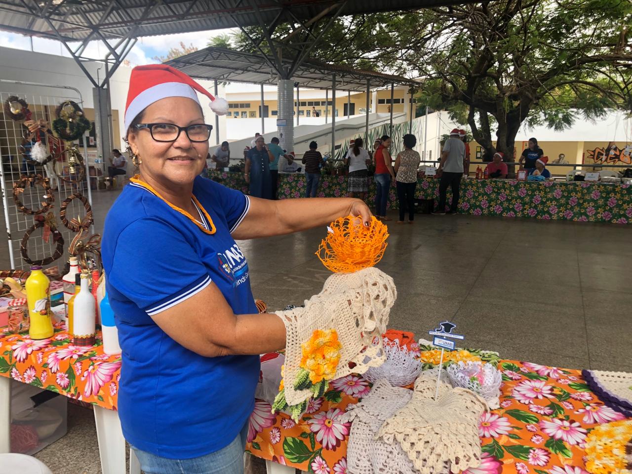 “Aqui foram expostos todos os trabalhos feitos pelos alunos da UNABI, como a cerâmica, o crochê, etc. A ideia da feira é valorizar e incentivar o trabalho de cada um”, disse a Coordenadora da UNABI São Luís, Profa. Conceição Pacheco.