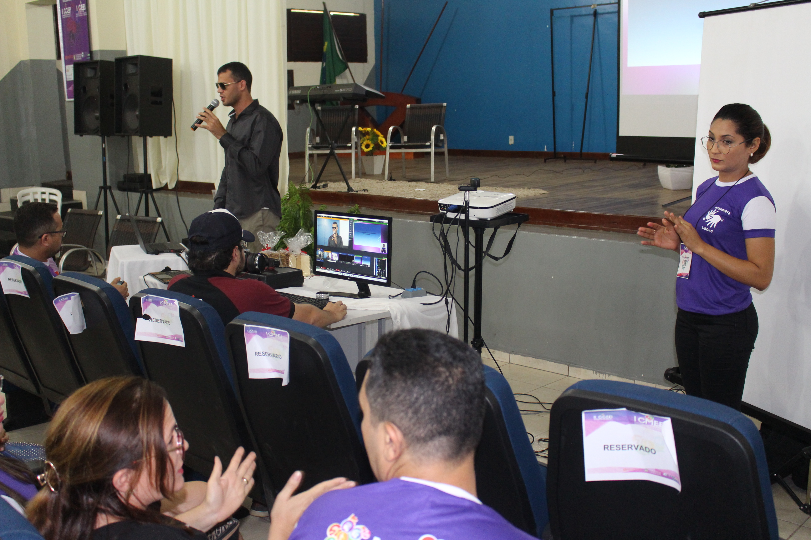 No segundo dia, a 1ª palestra foi do professor Mateus Batista de Sousa, de Açailândia, que é surdo, com o tema “O surdo na sociedade, na Educação Básica e na Universidade: desafios e perspectivas”. Ele foi auxiliado por sua intérprete de Libras, Silvanir Alves de Sousa: “Nasci surdo, minha mãe sempre me observava, eu não expressava nenhuma comunicação oral. Minha primeira escola não tinha acessibilidade. Minha mãe me levou à fonoaudióloga e em 2010 fui para outra escola.  Sobre a inclusão na escola às vezes o intérprete não passa direito a mensagem. Numa sala com ouvintes, nem todos mantém contato com o surdo”.