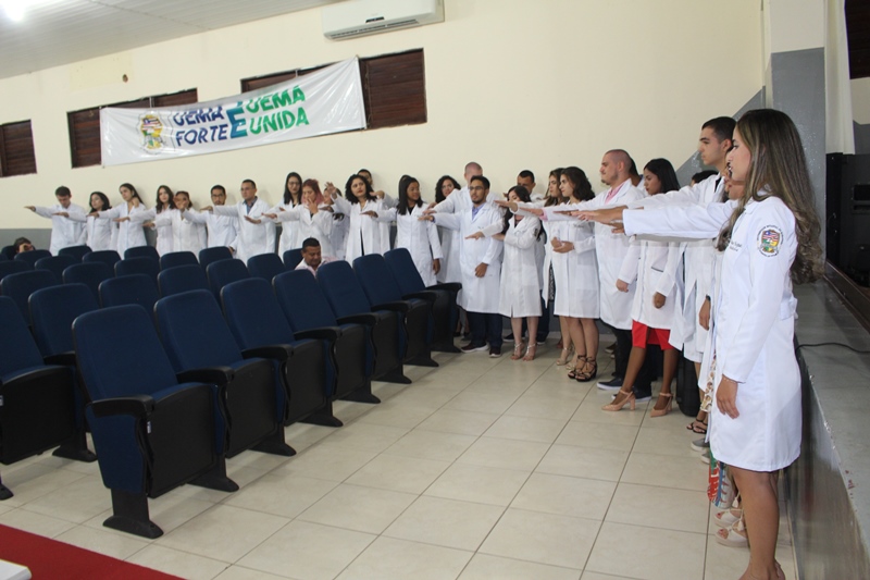 Durante o evento, os calouros receberam dos padrinhos e madrinhas a vestimenta que simboliza o trabalho desenvolvido pelos médicos, diante de familiares e amigos dos novos estudantes.