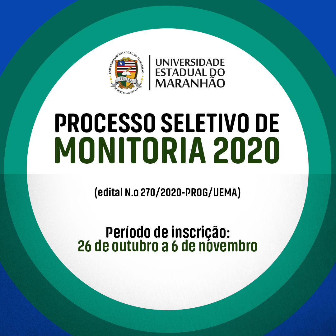 A Universidade Estadual do Maranhão (UEMA), por meio da Pró-Reitoria de Graduação (PROG), abre inscrições para o Processo Seletivo de Monitoria do segundo semestre de 2020.
