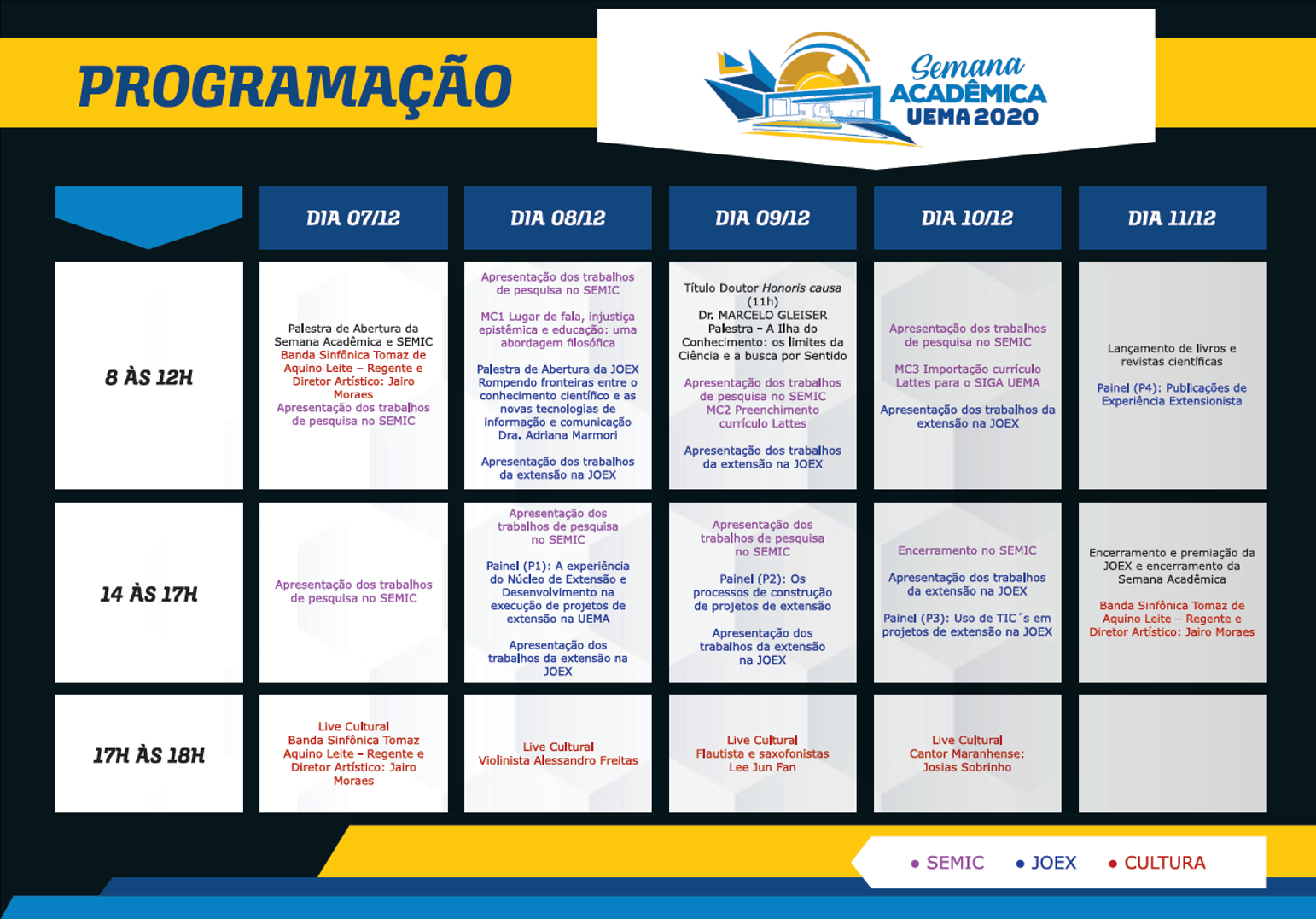 Confira aqui a Programação