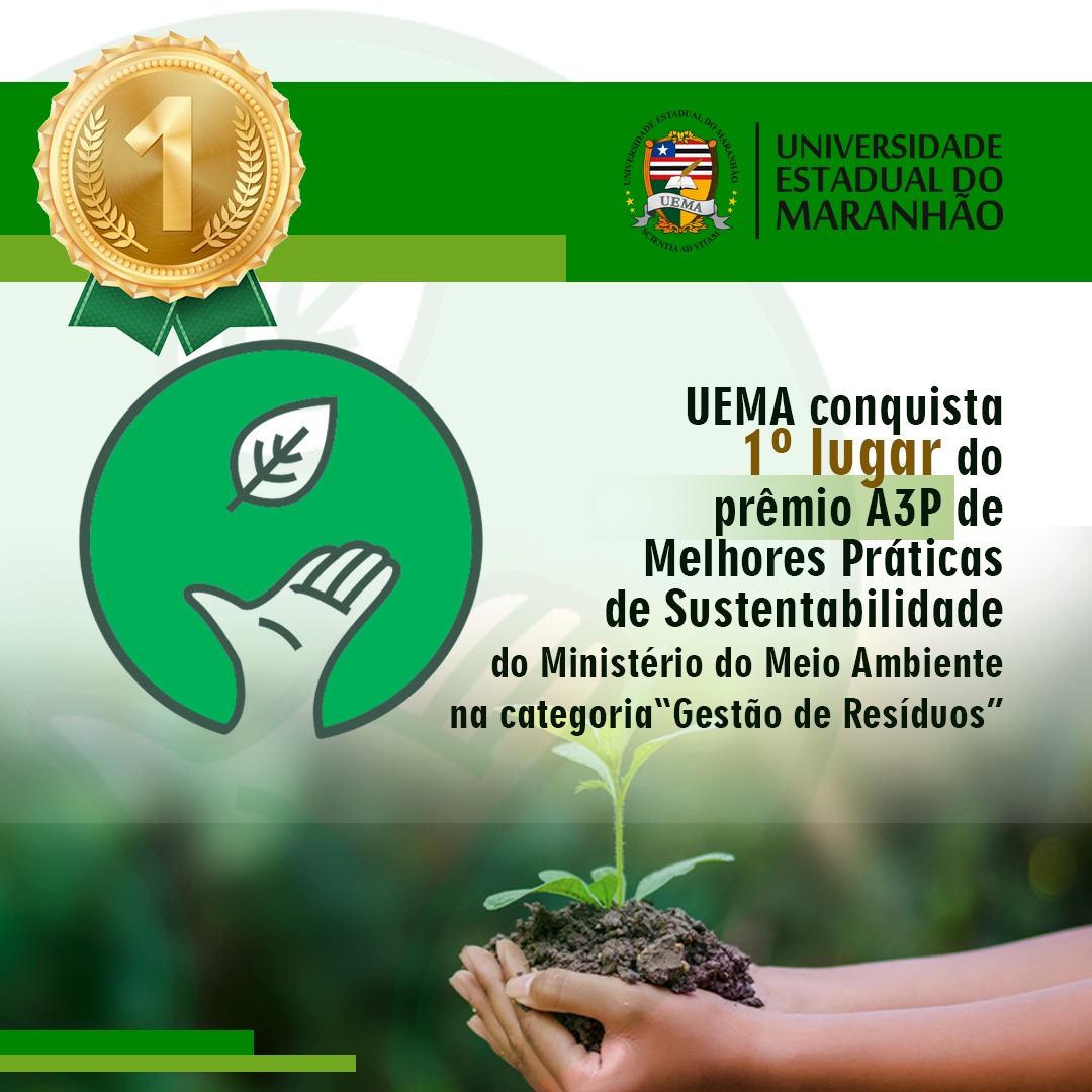 Universidade Estadual do Maranhão (UEMA), por meio da Assessoria de Gestão Ambiental (AGA), conquistou o 1º lugar no 8° Prêmio Melhores Práticas de Sustentabilidade – Prêmio A3P do Ministério do Meio Ambiente, na categoria “Gestão de Resíduos”, com o projeto: Aproveitamento de resíduos sólidos orgânicos do Restaurante Universitário – RU/UEMA em compostagem na Fazenda Escola de São Luís – FESL.