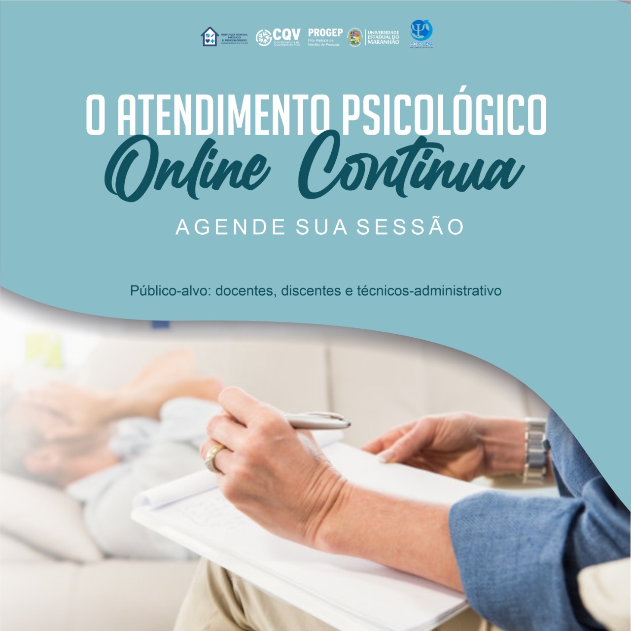A Pró-Reitoria de Gestão de Pessoas (PROGEP/UEMA), por meio do Serviço de Orientação Psicopedagógica (SOPP/UEMA), informa que o atendimento psicológico online continua.