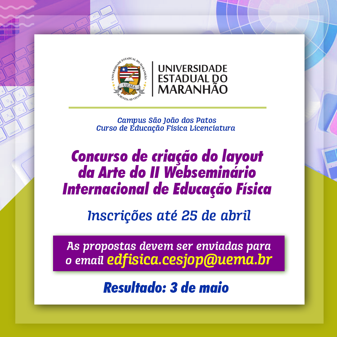 O Campus São João dos Patos da Universidade Estadual do Maranhão (UEMA) promove concurso de criação do layout da Arte do II Webseminário Internacional de Educação Física.