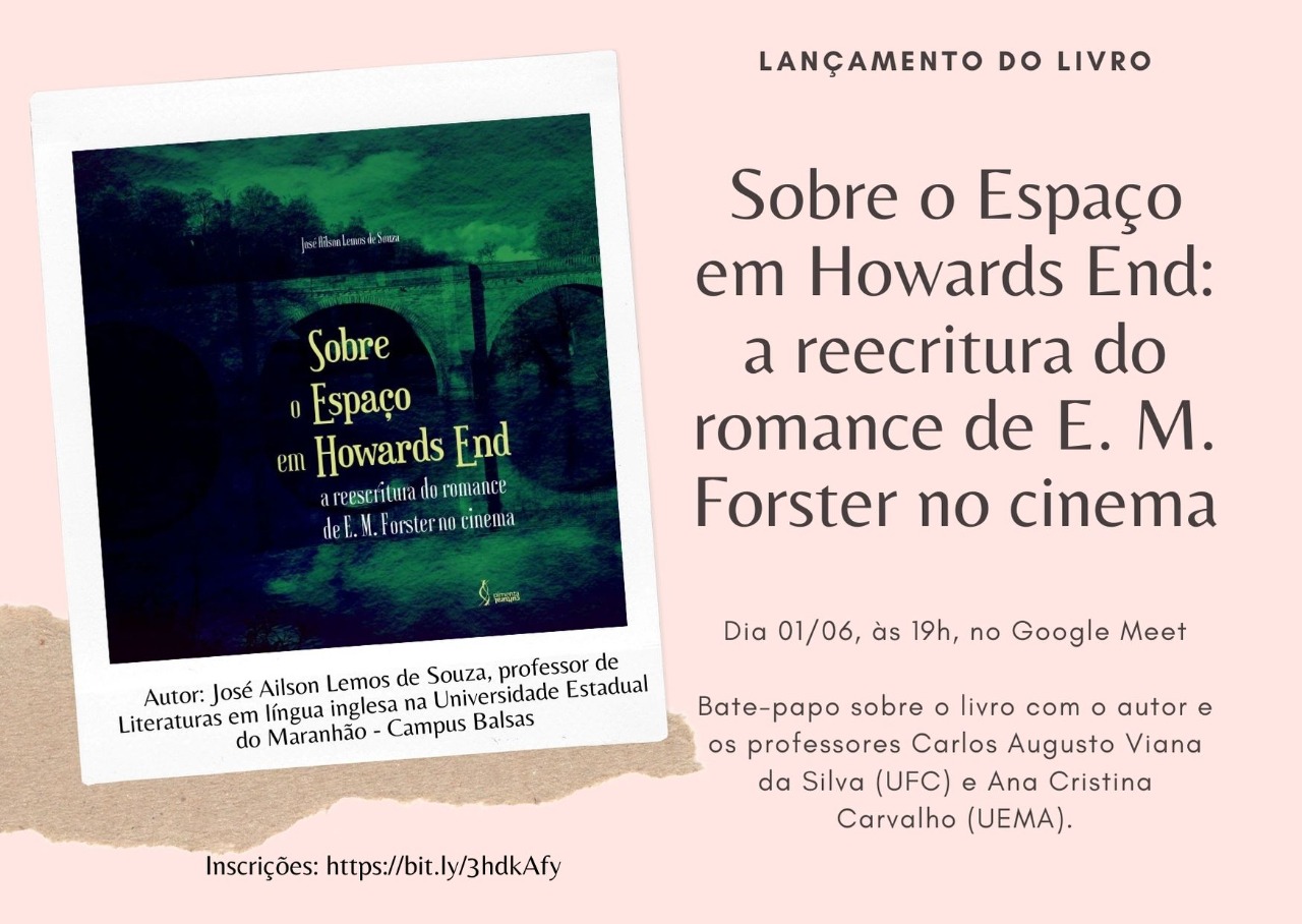 No próximo mês, será lançado o livro “Sobre o Espaço em Howards End: a reescritura do romance de E. M. Forster no cinema”, escrito pelo professor Literaturas em Língua Inglesa da Universidade Estadual do Maranhão (UEMA) Campus Balsas, José Ailson Lemos de Souza.