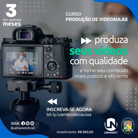 Estão abertas as inscrições para a segunda turma do curso de aperfeiçoamento em Produção de Videoaulas, promovido pela Universidade Estadual do Maranhão (UEMA), por meio do Núcleo de Tecnologias para Educação (UEMAnet). O curso é voltado para profissionais de todas as áreas, que tenham interesse em aprender a produzir e compartilhar conteúdos de qualidade.