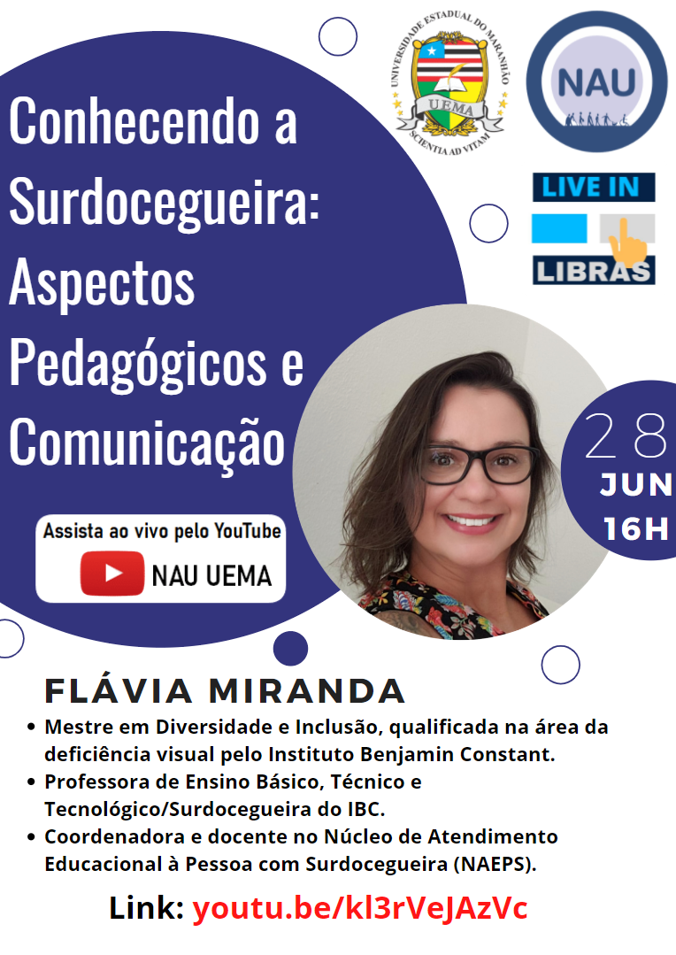 O Núcleo de Acessibilidade da Universidade Estadual do Maranhão (NAU/UEMA) realizará uma live com o tema “Conhecendo a Surdocegueira: Aspectos Pedagógicos e Comunicação”.