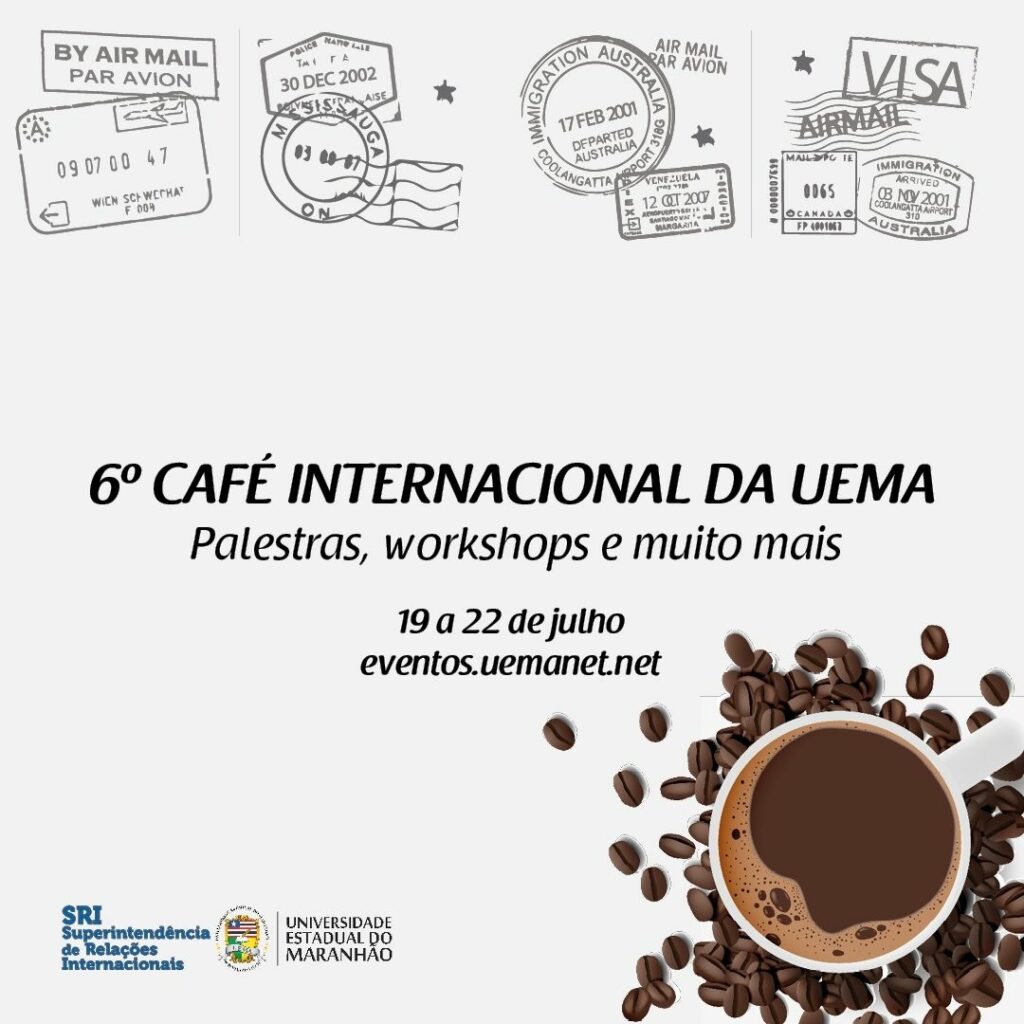 Estão abertas as inscrições para o VI Café Internacional da UEMA, evento promovido pela Universidade Estadual do Maranhão por meio da Superintendência de Relações Internacionais. O evento acontece entre os dias 19 e 22 de julho, de modo virtual, na plataforma de eventos do UEMAnet, eventos.uemanet.net.
