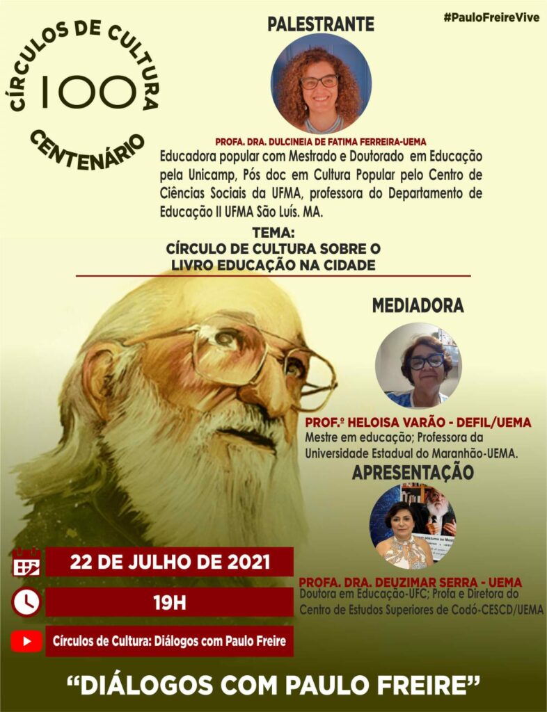 Com transmissão via canal do Círculos de Cultura no Youtube, o evento online objetiva debater a contemporaneidade de Paulo Freire e suas contribuições para a pesquisa científica vinculadas à realidade, apontando o movimento dialético e crítico entre saberes e experiências para a transformação sócio educacional.