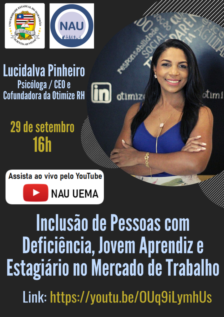 O Núcleo de Acessibilidade da Universidade Estadual do Maranhão (NAU/UEMA) realizará uma live com o tema “Inclusão de Pessoas com Deficiência, Jovem Aprendiz e Estagiário no Mercado de Trabalho”.