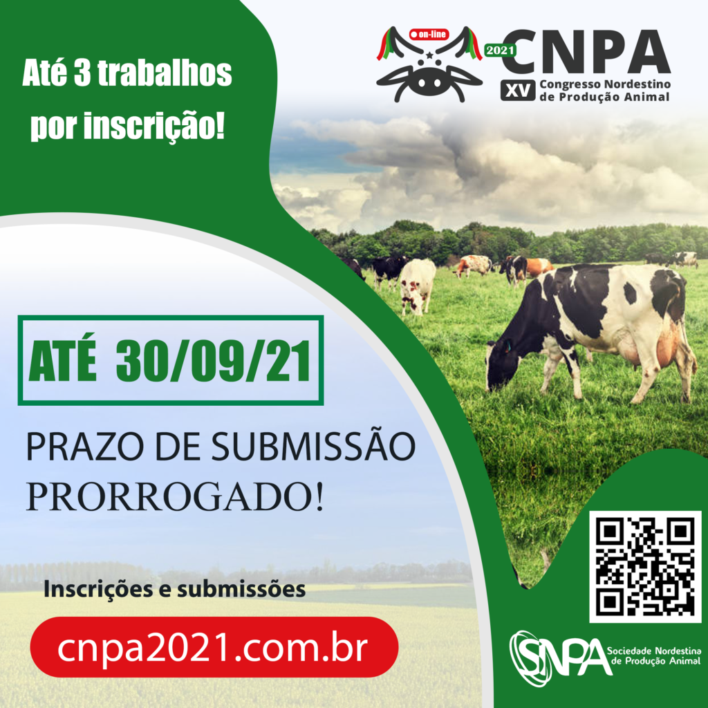 A submissão de trabalhos para a décima quinta edição do Congresso Nordestino de Produção Animal (CNPA) segue aberta até 30 de setembro, evento tradicional da Sociedade Nordestina de Produção Animal (SNPA).