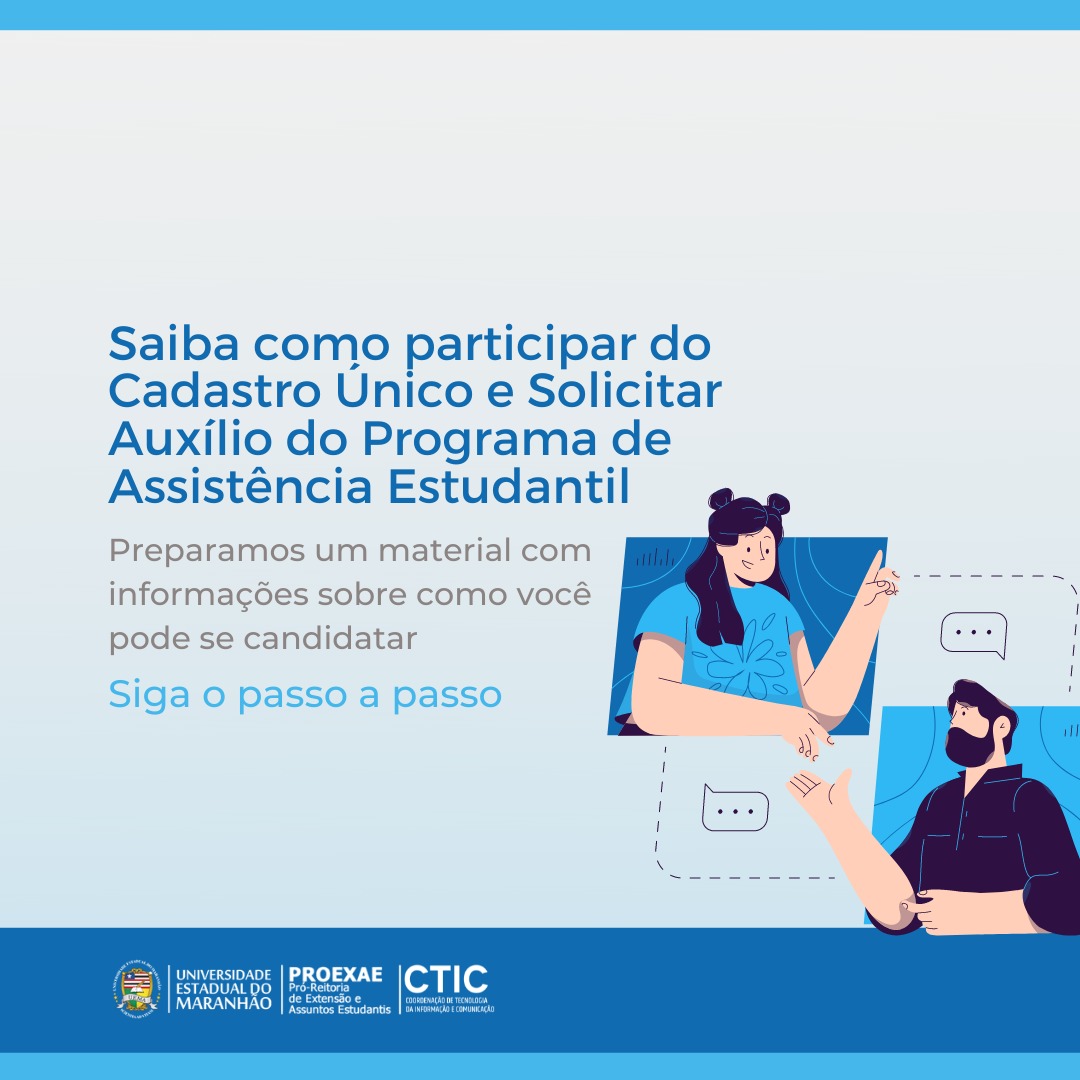 A Universidade Estadual do Maranhão, por meio da Pró-reitoria de Extensão e Assuntos Estudantis, cria o Plantão Tira-dúvidas do Programa de Assistência Estudantil, nos meses de outubro e novembro, das 13h30 às 17h, pela Plataforma Teams.
