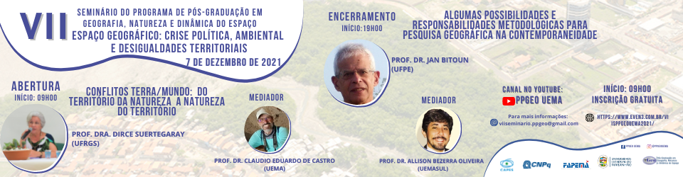 O Programa de Pós-Graduação em Geografia, Natureza e Dinâmica do Espaço da Universidade Estadual do Maranhão (UEMA) realizará no dia 07 de dezembro o VII Seminário de Pós-Graduação em Geografia.