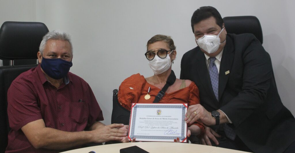 A mais alta honraria da Universidade Estadual do Maranhão, foi concedida hoje,10, à professora doutora Zafira da Silva de Almeida, pró-reitora de graduação da UEMA. A medalha Gomes de Souza de mérito universitário, tem a finalidade de galardoar personalidades, de dentro e fora do território maranhense, merecedoras de particular reconhecimento por suas realizações nas áreas da educação, da cultura, da ciência, das artes e da tecnologia. A cerimônia aconteceu na reitoria da UEMA, no campus Paulo VI.