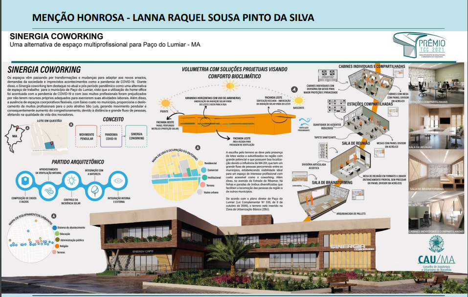 O Conselho de Arquitetura e Urbanismo do Maranhão – CAU/MA realizou, dia 06 de dezembro, a entrega do Prêmio TCC 2021 para estudantes de Arquitetura e Urbanismo do Estado do Maranhão.