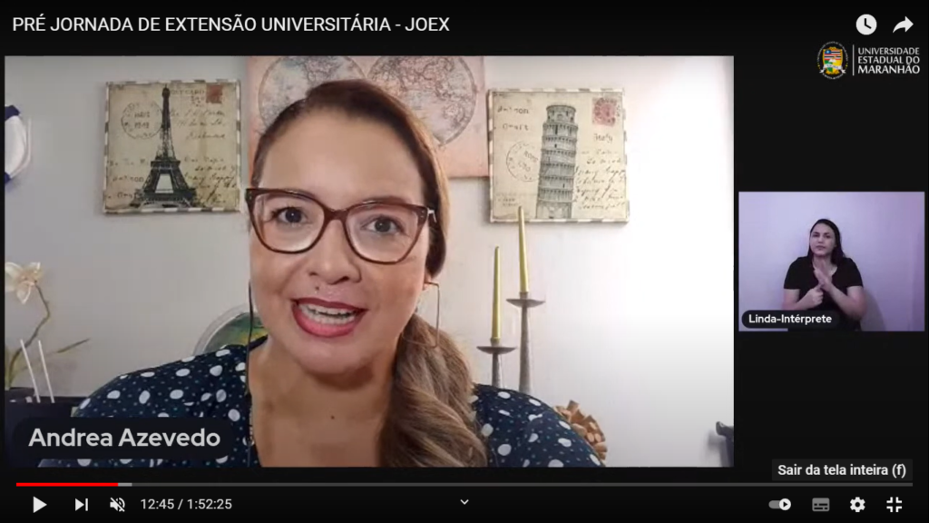 A palestra de abertura da Pré Jornada de Extensão Universitária – JOEX, foi ministrada pela professora Miliane Souza, da Universidade Federal Rural do Rio de Janeiro (UFRRJ). Com o tema “Curricularização da Extensão”, a palestrante pontou que “devemos trazer a extensão para o lugar que ela merece dentro do tripé ensino, pesquisa e extensão, tirando-a de um lugar lateralizado”, disse.