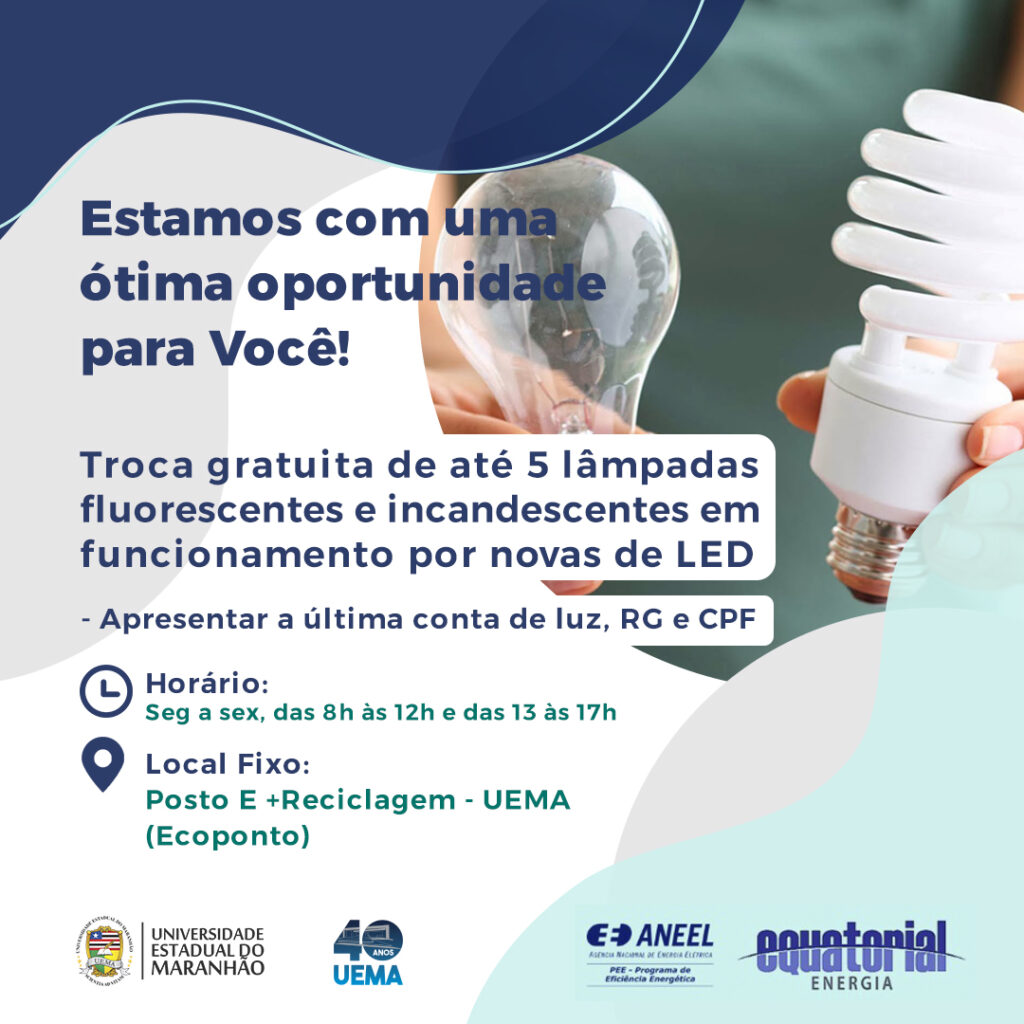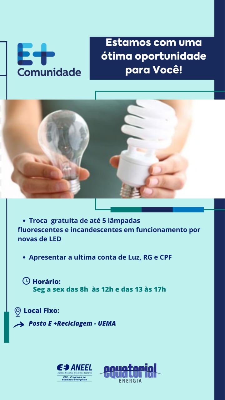 A partir de amanhã(23), no Posto E+ reciclagem UEMA, inicia a Campanha E + reciclagem, um projeto da Equatorial Energia, que tem como objetivo promover a sustentabilidade e incentivar o consumo consciente.
