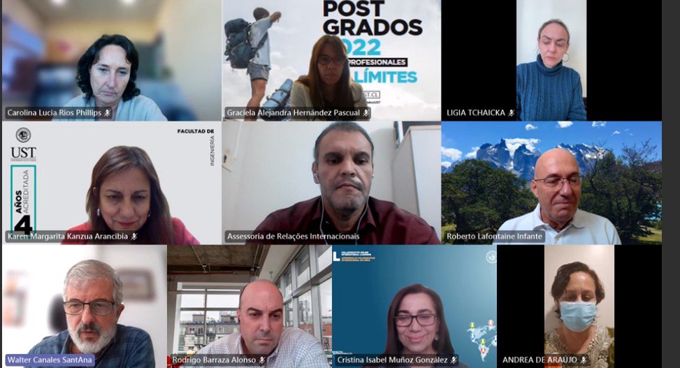 Representando a Universidad Santo Tomás: Dra. Carolina Ríos, Diretora Nacional de Pós-Graduação; Dra. Graciela Alejandra Hernández, Coordenadora de Pós-Graduação; Dr. Rodrigo Bazarra Alonso, Faculdade Acadêmica de Engenharia; Roberto Lafontaine Infante, Diretor de Projetos Internacionais e Cristina Isabel Muñoz, Coordenadora Nacional de Experiência Internacional.