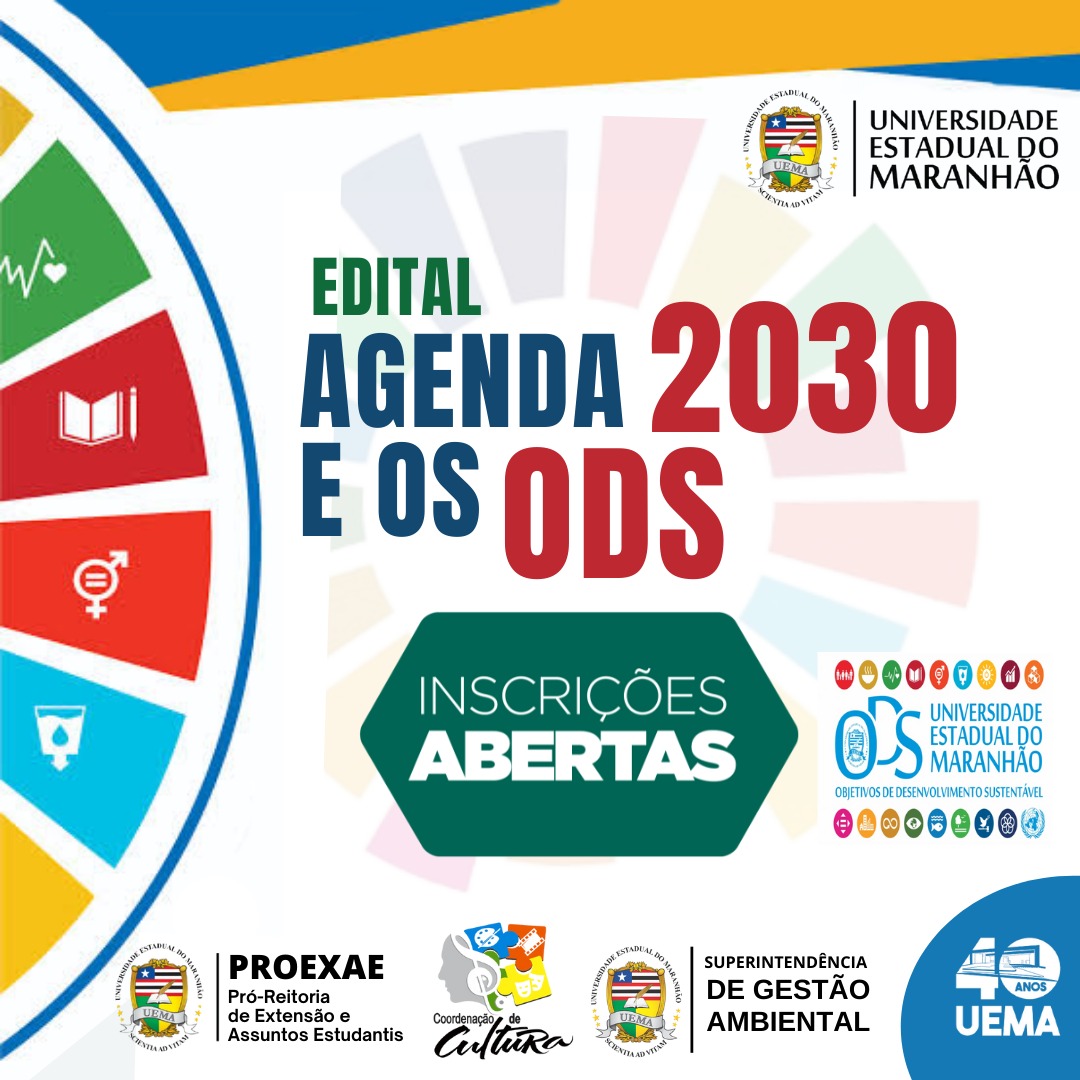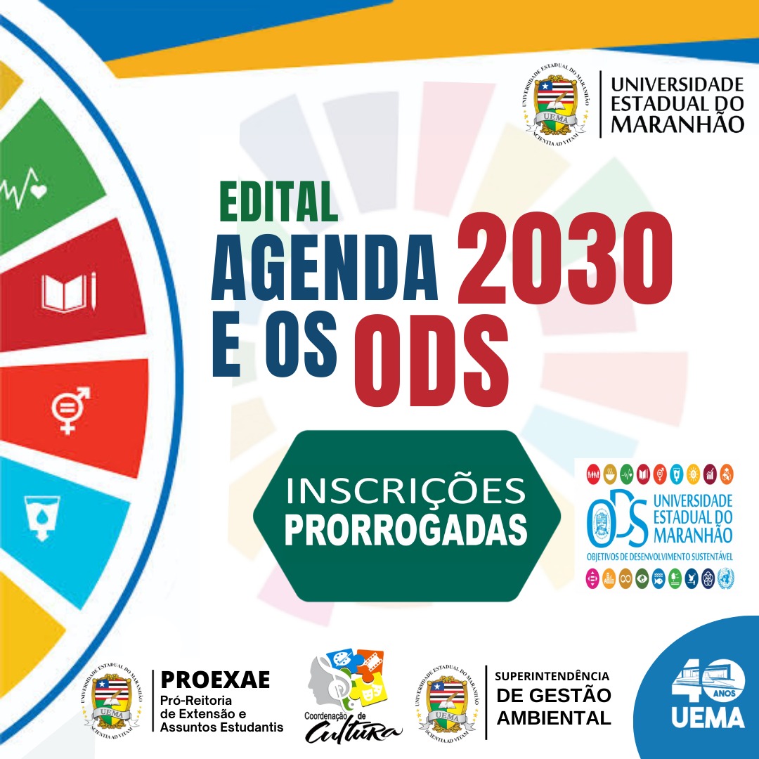A Universidade Estadual do Maranhão, por meio da Pró-Reitoria de Extensão e Assuntos Estudantis e da Assessoria Especializada na Articulação dos Objetivos de Desenvolvimento Sustentável – ODS/UEMA, prorroga as inscrições para o Edital referente à popularização da Agenda 2030 e aos Objetivos de Desenvolvimento Sustentável (ODS). A submissão das propostas pode ser feita até 17 de junho.