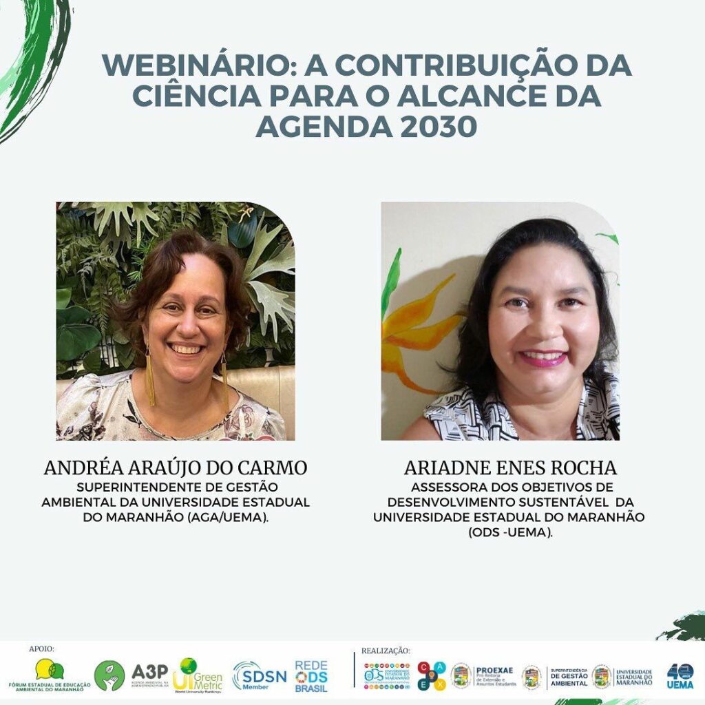 A Universidade Estadual do Maranhão (UEMA), por meio da Superintendência de Gestão Ambiental (AGA), realizará no dia 09 de novembro (quarta-feira), às 16h, o Webinário: “A contribuição da ciência para o alcance da Agenda 2030”.