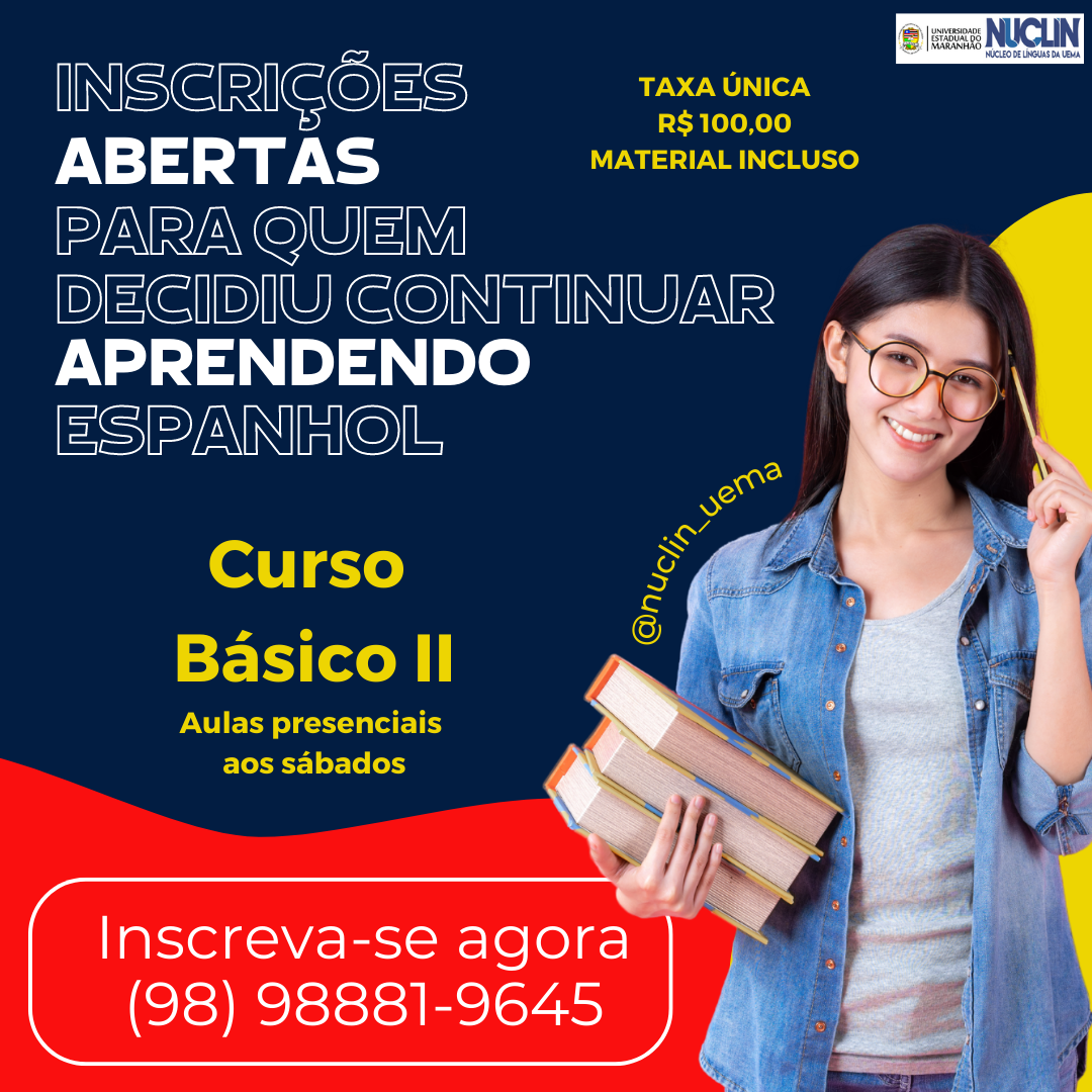 O Núcleo de Línguas da Universidade Estadual do Maranhão (NUCLIN/UEMA) está com inscrições abertas para o Curso de Espanhol – Básico II.