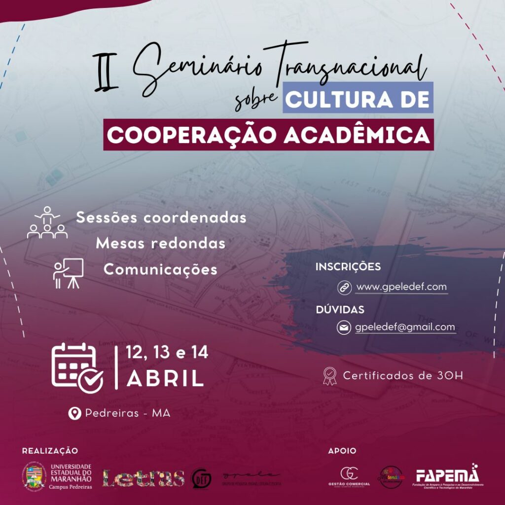 O evento acontecerá nos dias 12, 13 e 14 de abril no campus da Universidade Estadual do Maranhão (UEMA), em Pedreiras. Contará com mesas redondas que irão debater eixos que podem auxiliar na melhoria da cooperação acadêmica, assim como apresentações de comunicações e sessões coordenadas. Além disso, os inscritos receberão um certificado de 30h.