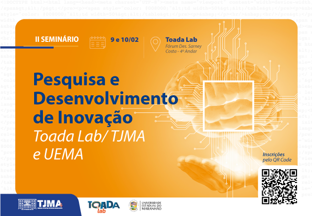 O II Seminário de Pesquisa e Desenvolvimento de Inovação Toada Lab/TJMA e UEMA tem como objetivo abrir um espaço de discussão e compartilhamento de informações, com a defesa e qualificação dos alunos do Mestrado em Engenharia de Computação e Sistemas da UEMA, que promovem o desenvolvimento de pesquisas de inovação.