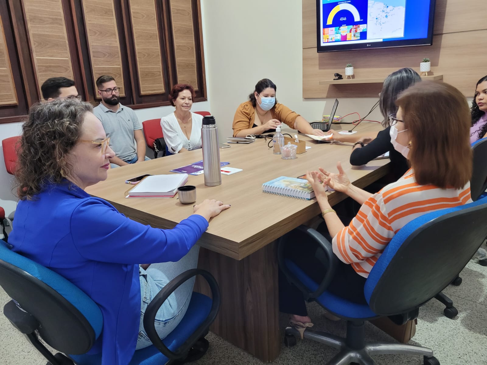 Estiveram presentes no encontro a Dra. Helena Duailibe, Secretária Adjunta de Saúde, e a Dra. Ana Lúcia Nunes, Diretora Administrativa da Escola de Saúde Pública, que foram recebidas pela coordenadora geral, Profa. Ligia Tchaicka.