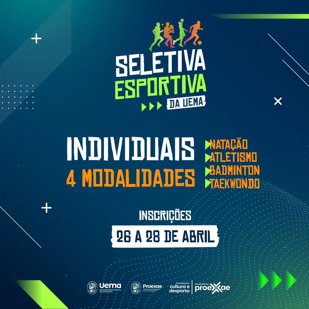 Estão abertas as inscrições para a Seletiva Esportiva da Universidade Estadual do Maranhão (UEMA), nas modalidades individuais para: Natação, Atletismo, Badminton e Taekwondo.
